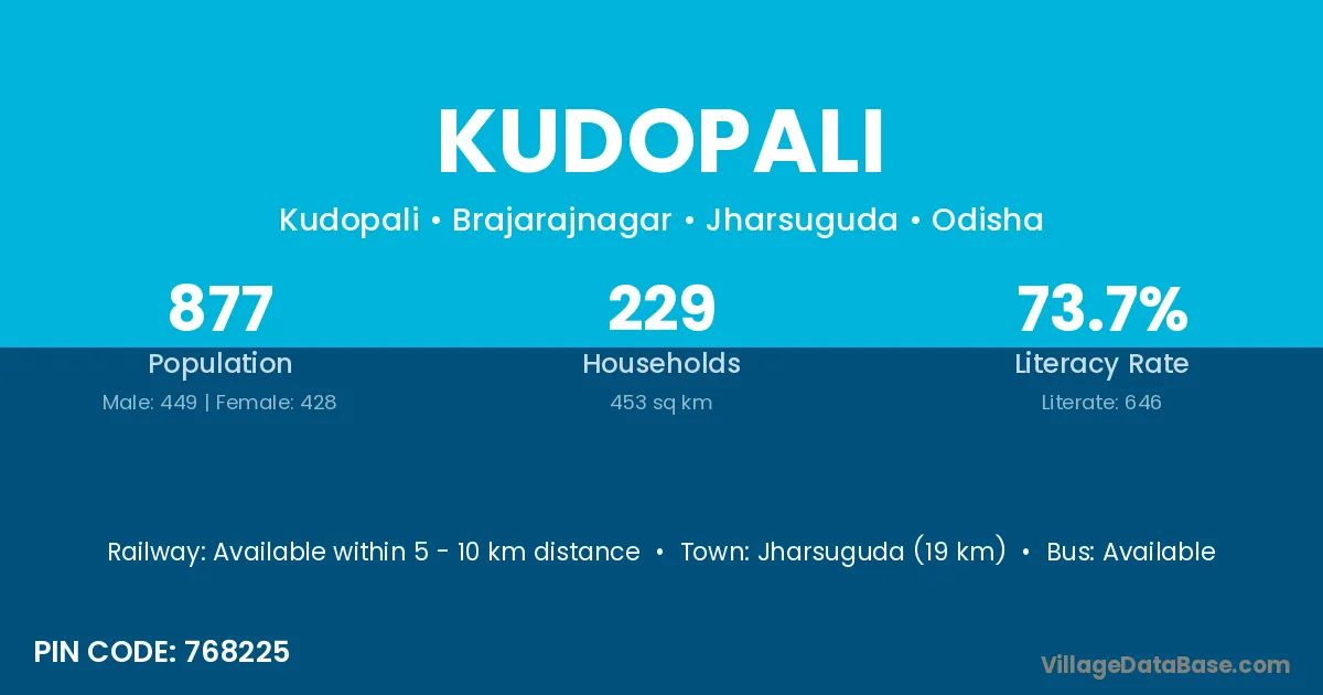Padmapur (25 km) is the nearest town to Kudopali village for major economic activities and is located approximately 25 km away.