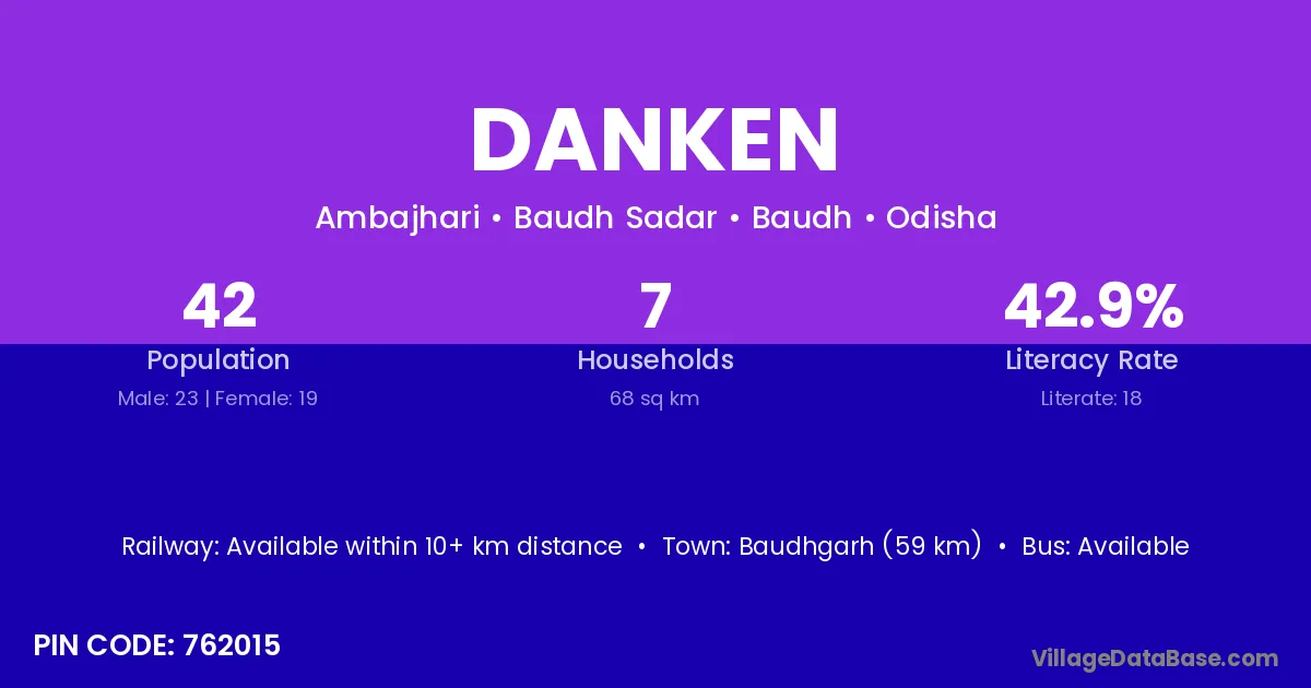 Baudhgarh (59 km) is the nearest town to Danken village for major economic activities and is located approximately 59 km away.