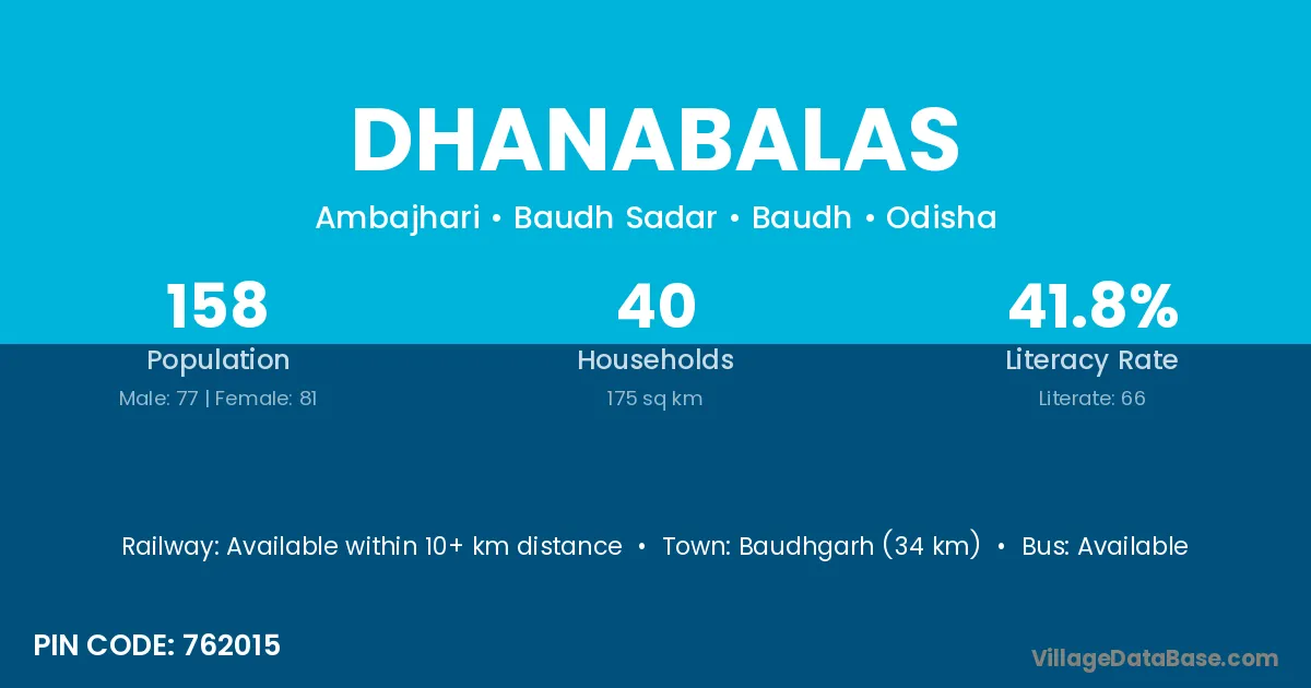 Dhanabalas village has a total population of 158 people, of which 77 are males and 81 are females.