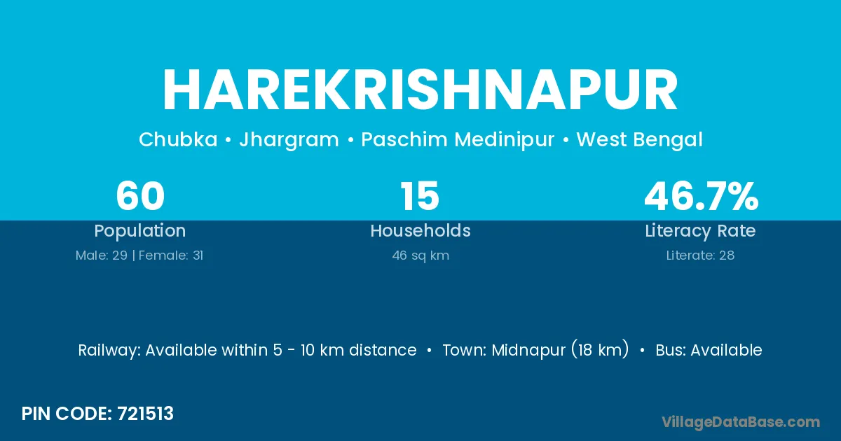 Baudhgarh (24 km) is the nearest town to Harekrishnapur village for major economic activities and is located approximately 24 km away.