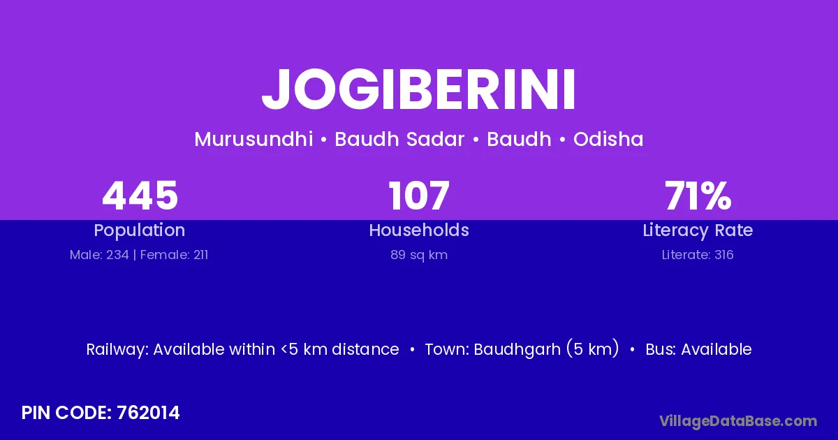 Baudhgarh (5 km) is the nearest town to Jogiberini village for major economic activities and is located approximately 5 km away.