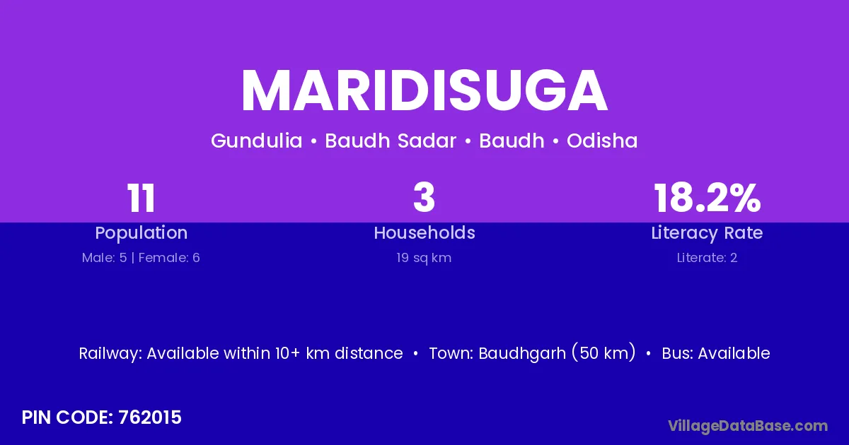 Baudhgarh (50 km) is the nearest town to Maridisuga village for major economic activities and is located approximately 50 km away.
