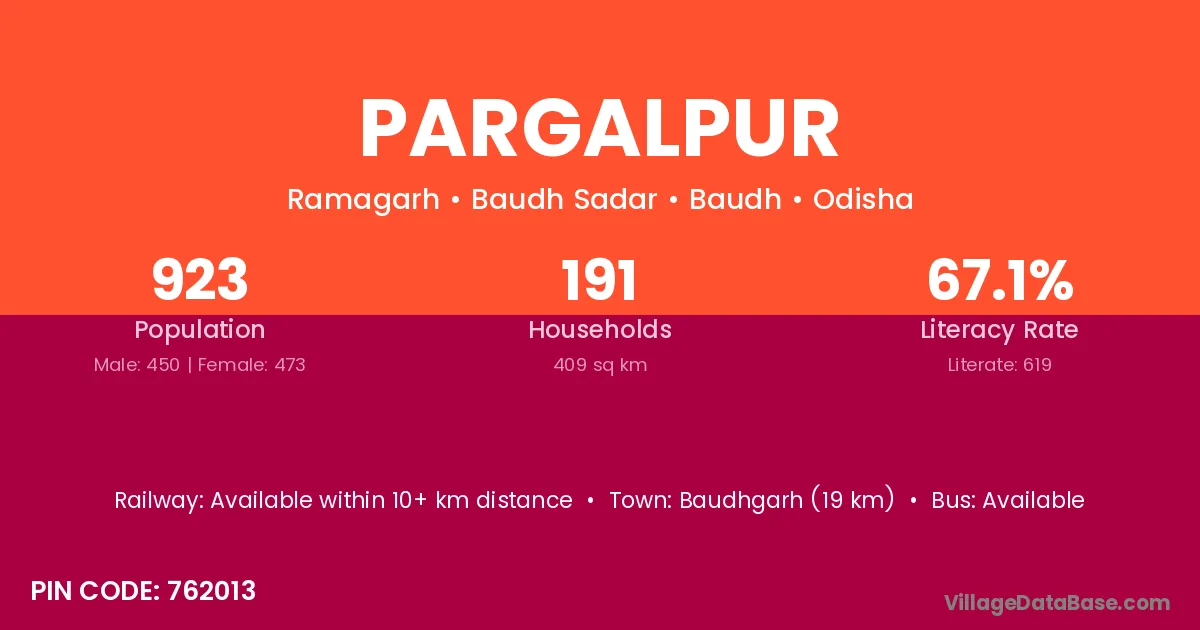 Baudhgarh (19 km) is the nearest town to Pargalpur village for major economic activities and is located approximately 19 km away.