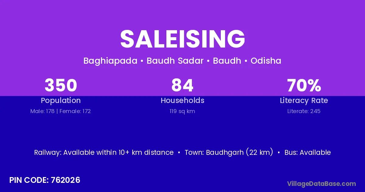 Baudhgarh (22 km) is the nearest town to Saleising village for major economic activities and is located approximately 22 km away.
