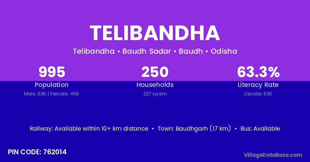 Baudhgarh (17 km) is the nearest town to Telibandha village for major economic activities and is located approximately 17 km away.