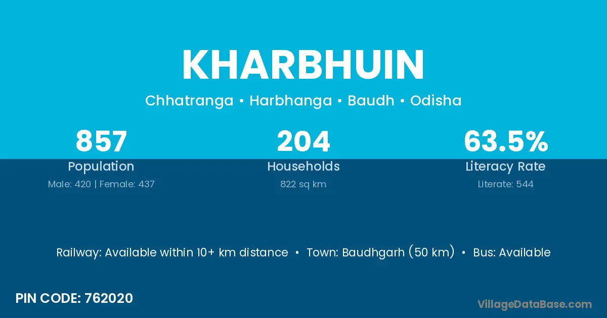 Baudhgarh (50 km) is the nearest town to Kharbhuin village for major economic activities and is located approximately 50 km away.