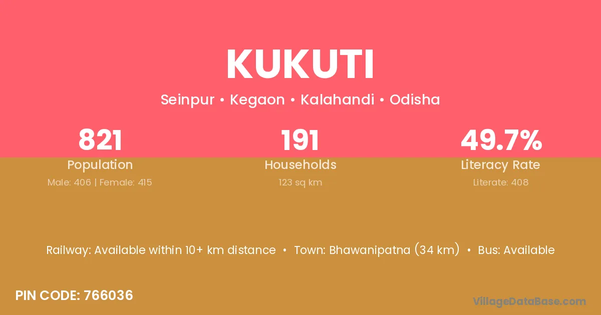 Baudhgarh (73 km) is the nearest town to Kukuti village for major economic activities and is located approximately 73 km away.