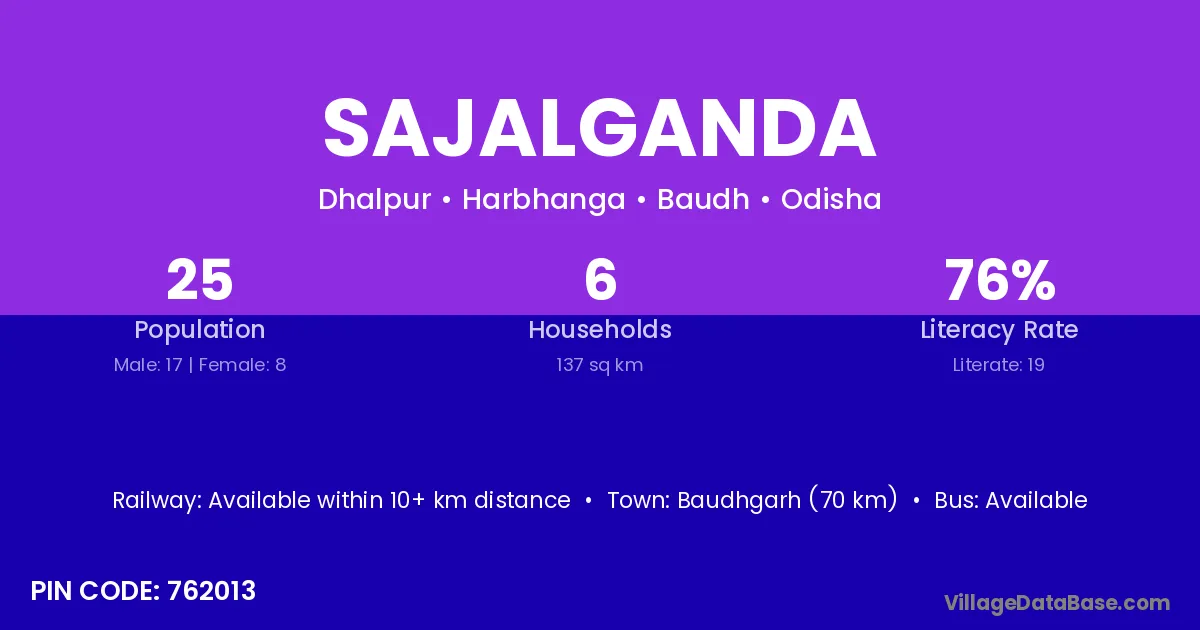 Baudhgarh (70 km) is the nearest town to Sajalganda village for major economic activities and is located approximately 70 km away.