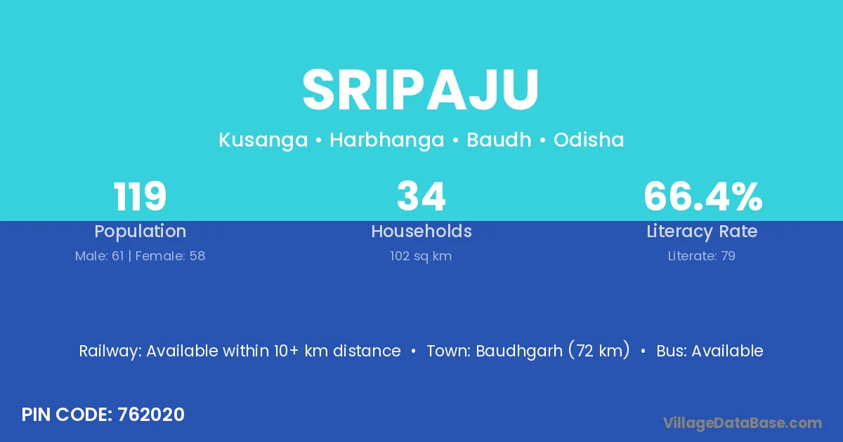 Sripaju village has a total population of 119 people, of which 61 are males and 58 are females.