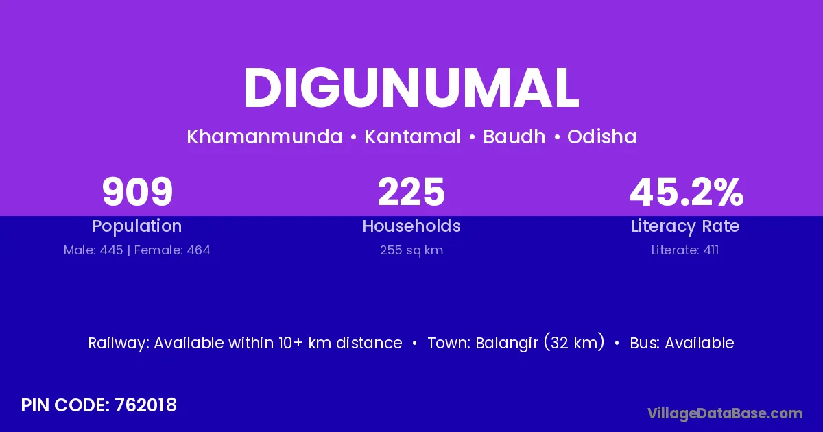 Balangir (32 km) is the nearest town to Digunumal village for major economic activities and is located approximately 32 km away.