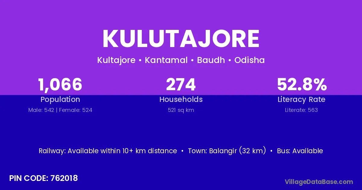 Balangir (32 km) is the nearest town to Kulutajore village for major economic activities and is located approximately 32 km away.