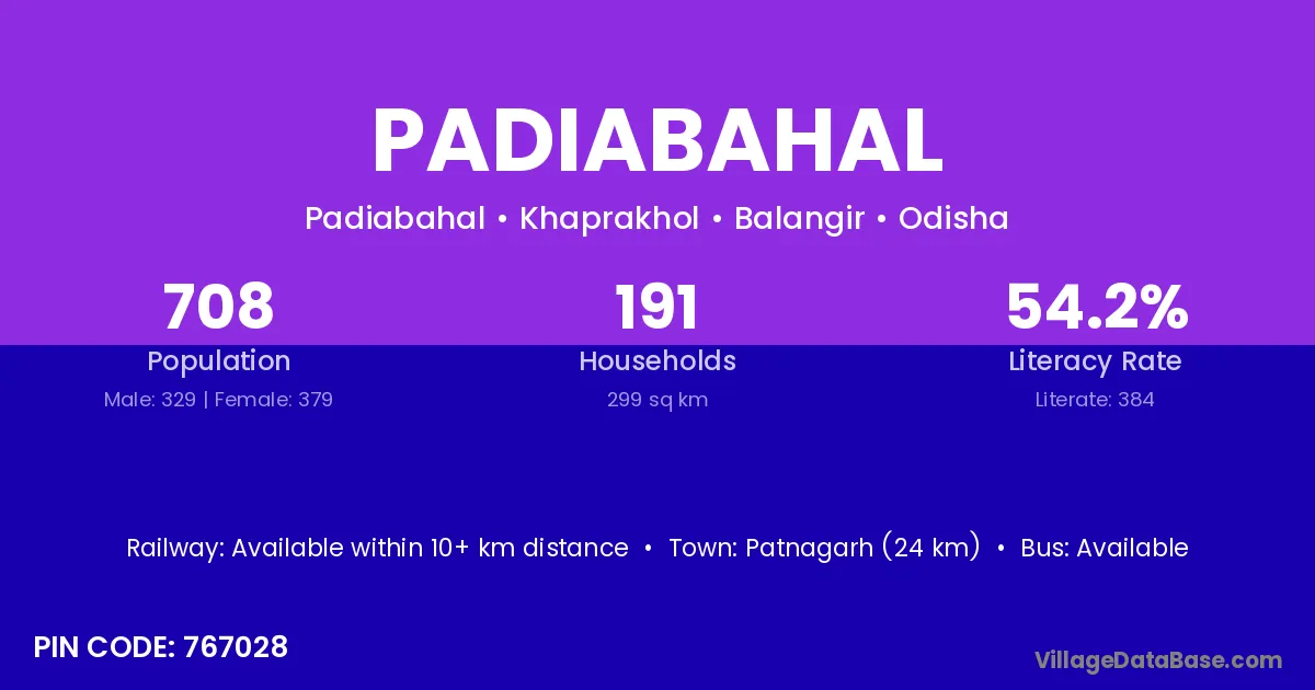 According to Census 2011 information, the village code of Padiabahal village is 762030.