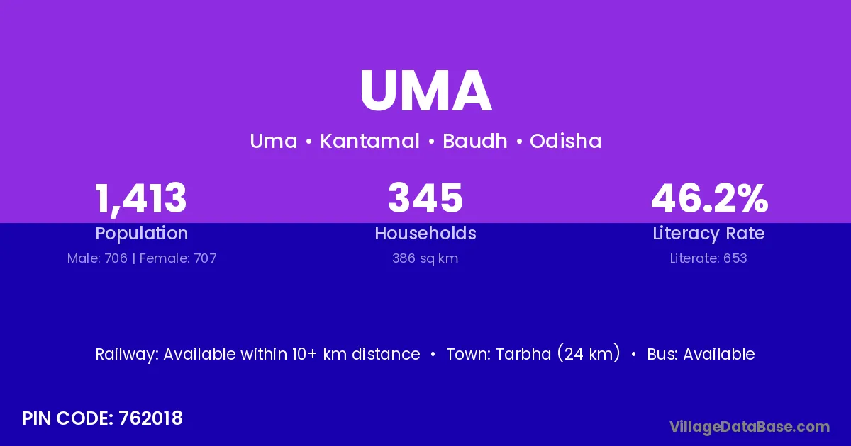 Tarbha (24 km) is the nearest town to Uma village for major economic activities and is located approximately 24 km away.