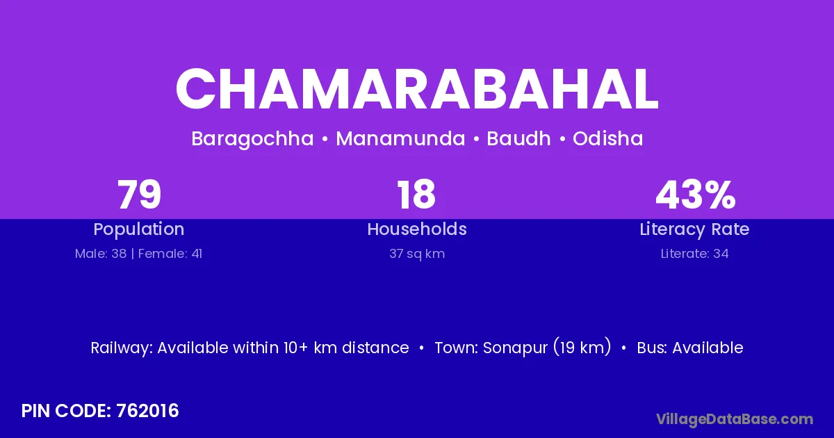 Chamarabahal village has a total population of 79 people, of which 38 are males and 41 are females.