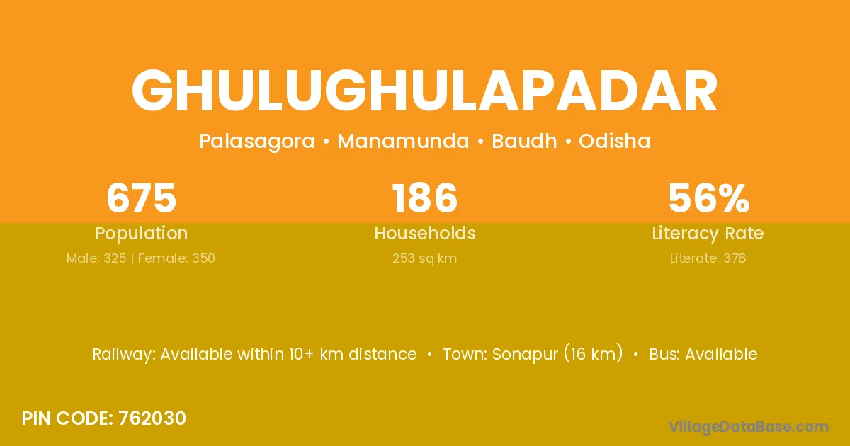 Ghulughulapadar village has a total population of 675 people, of which 325 are males and 350 are females.
