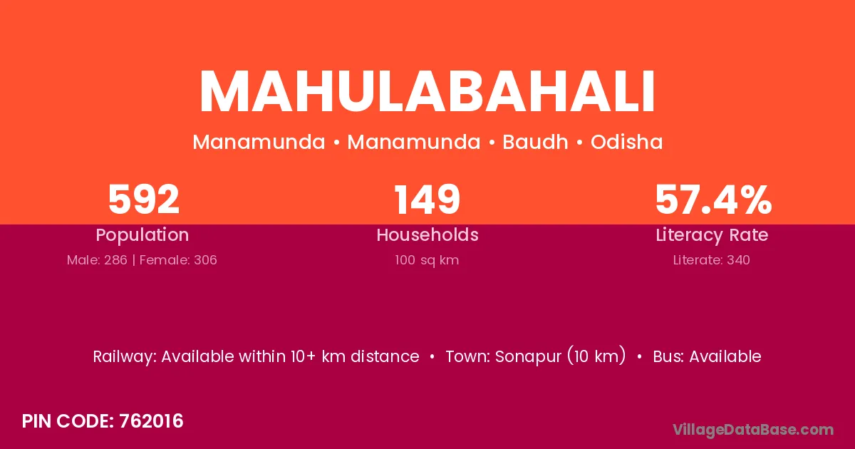 Mahulabahali village has a total population of 592 people, of which 286 are males and 306 are females.