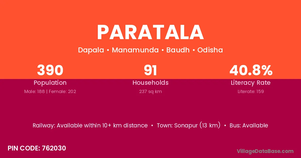 Paratala village has a total population of 390 people, of which 188 are males and 202 are females.