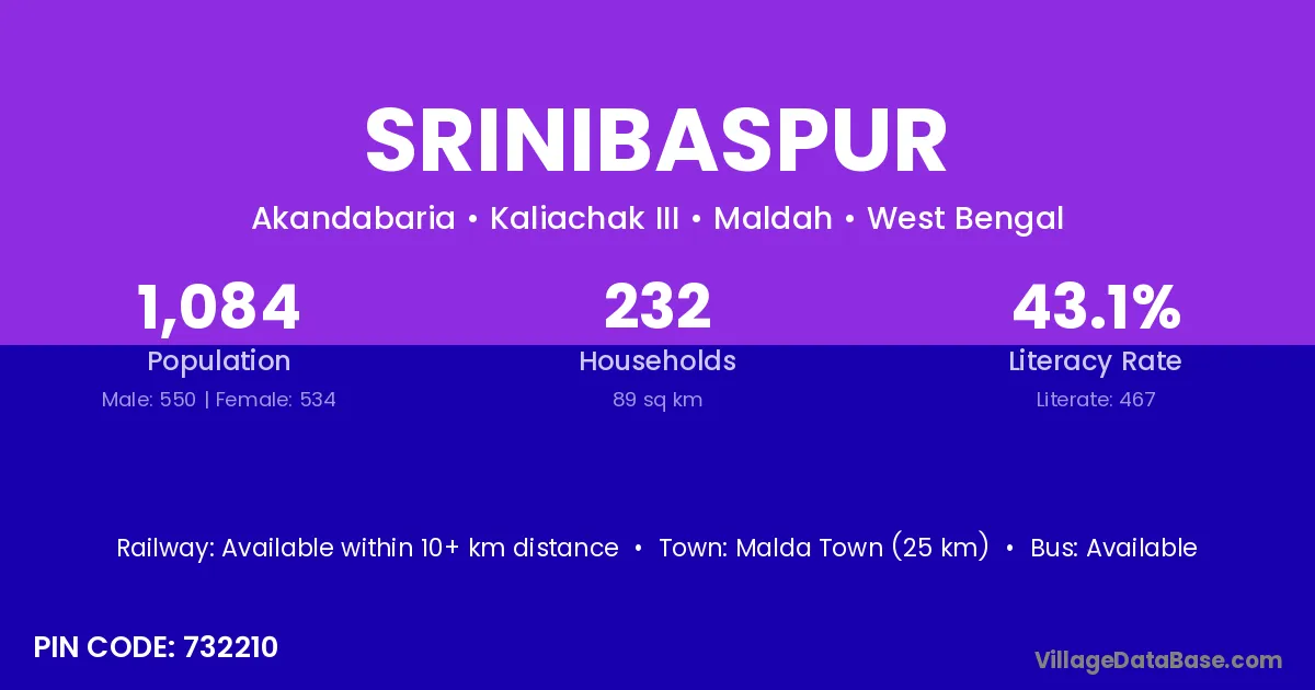 The literacy rate of Srinibaspur village is 34.34%. Male literacy stands at 39.22% and female literacy at 29.17%.