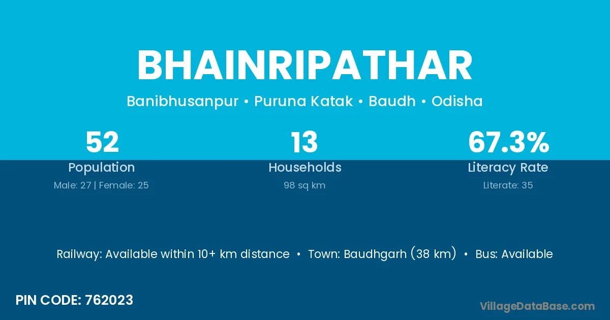 Baudhgarh (38 km) is the nearest town to Bhainripathar village for major economic activities and is located approximately 38 km away.