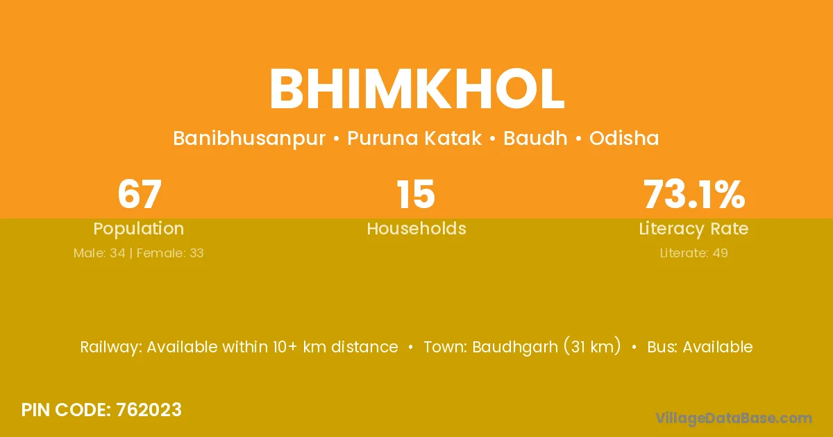 Baudhgarh (31 km) is the nearest town to Bhimkhol village for major economic activities and is located approximately 31 km away.
