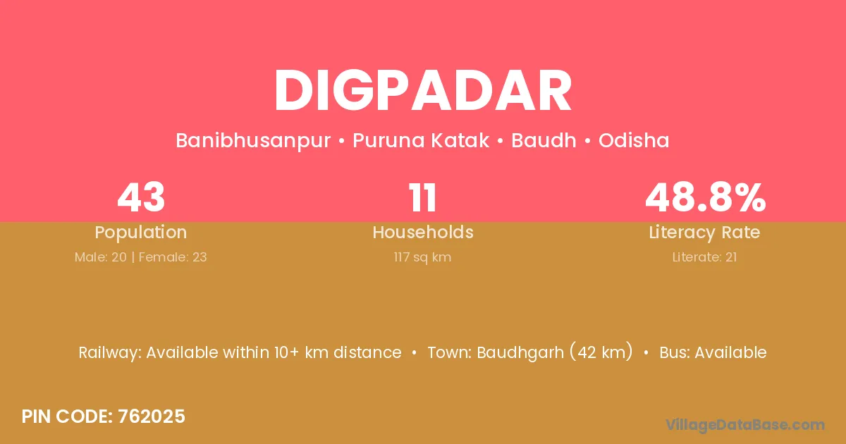 Digpadar village has a total population of 43 people, of which 20 are males and 23 are females.