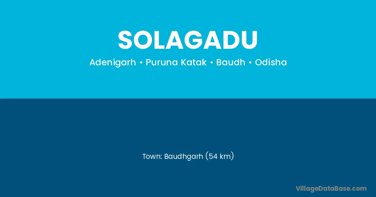 Baudhgarh (54 km) is the nearest town to Solagadu village for major economic activities and is located approximately 54 km away.