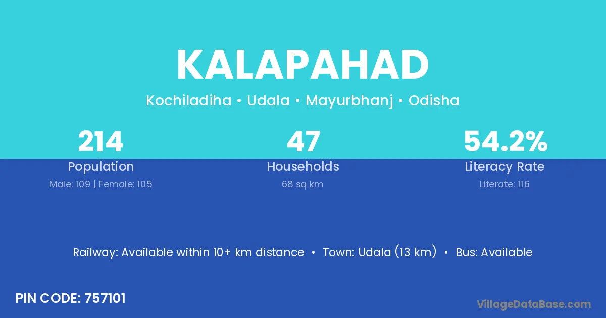 Bhadrak (28 km) is the nearest town to Kalapahad village for major economic activities and is located approximately 28 km away.