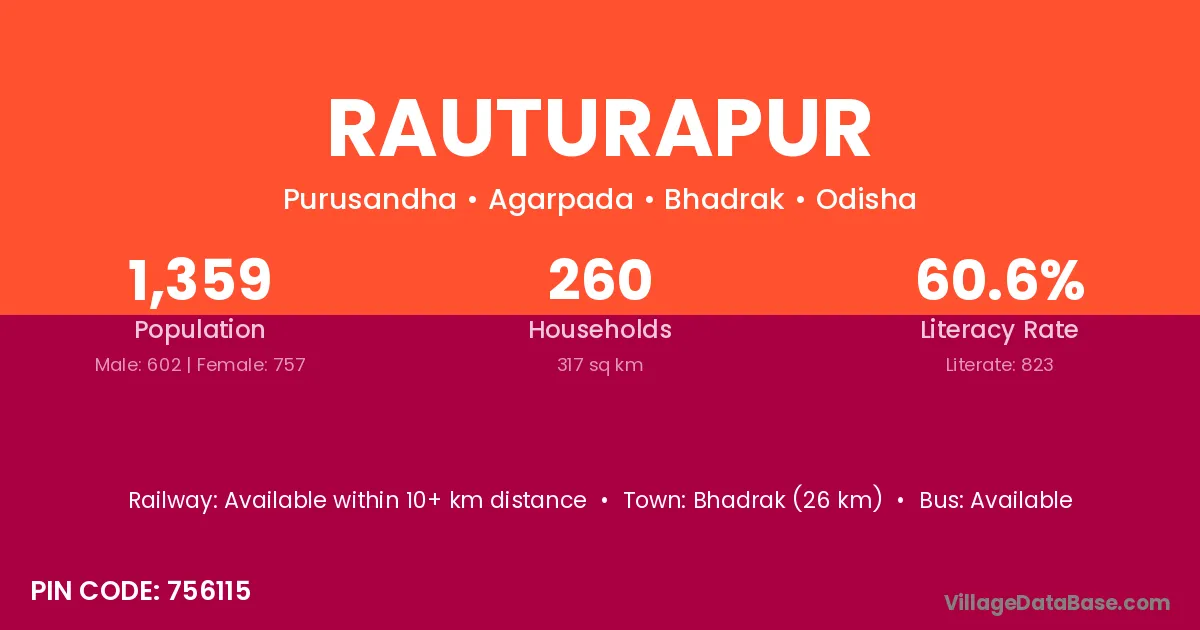 Bhadrak (26 km) is the nearest town to Rauturapur village for major economic activities and is located approximately 26 km away.