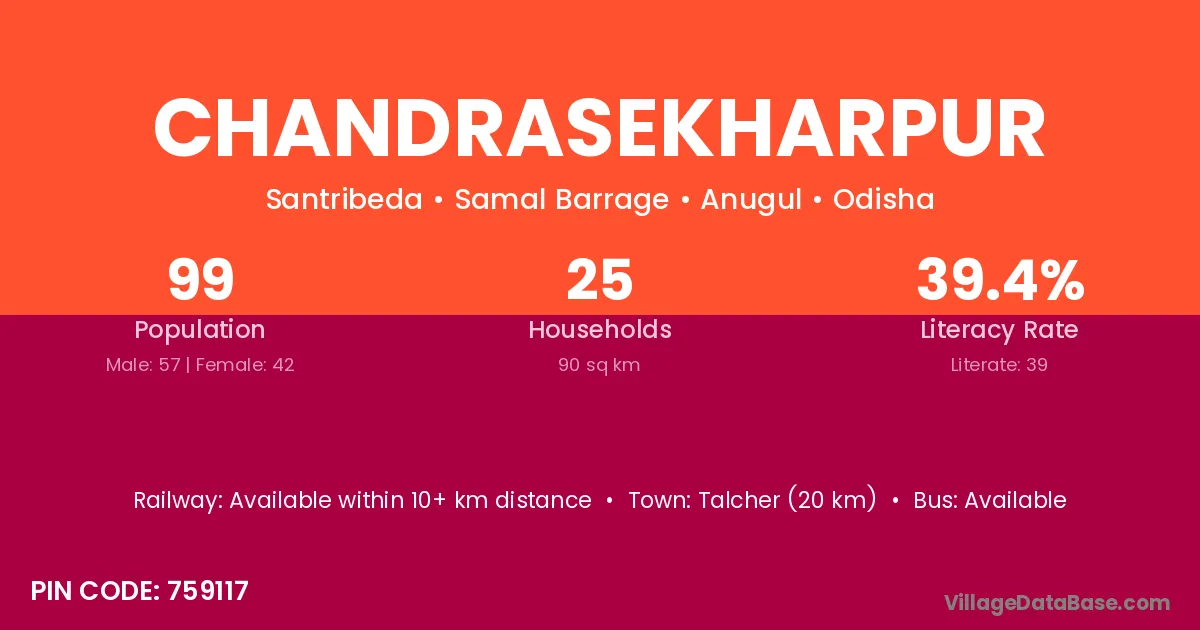 Chandrasekharpur village has a total population of 36 people, of which 18 are males and 18 are females.