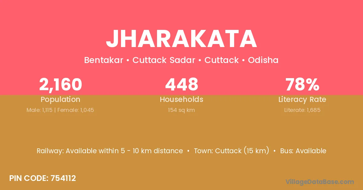 Bhadrak (43 km) is the nearest town to Jharakata village for major economic activities and is located approximately 43 km away.
