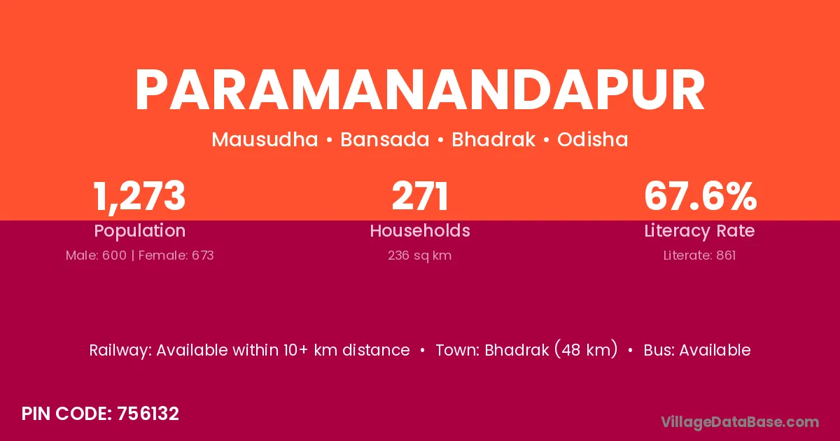 Bhadrak (48 km) is the nearest town to Paramanandapur village for major economic activities and is located approximately 48 km away.