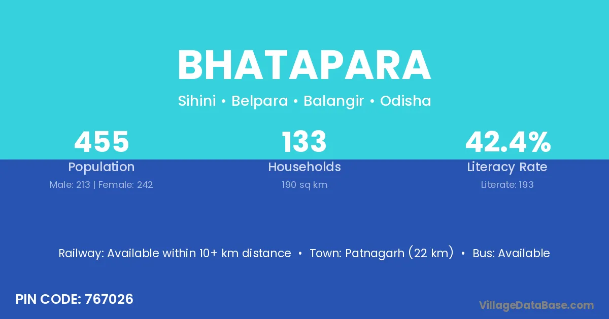 Basudebpur (10 km) is the nearest town to Bhatapara village for major economic activities and is located approximately 10 km away.