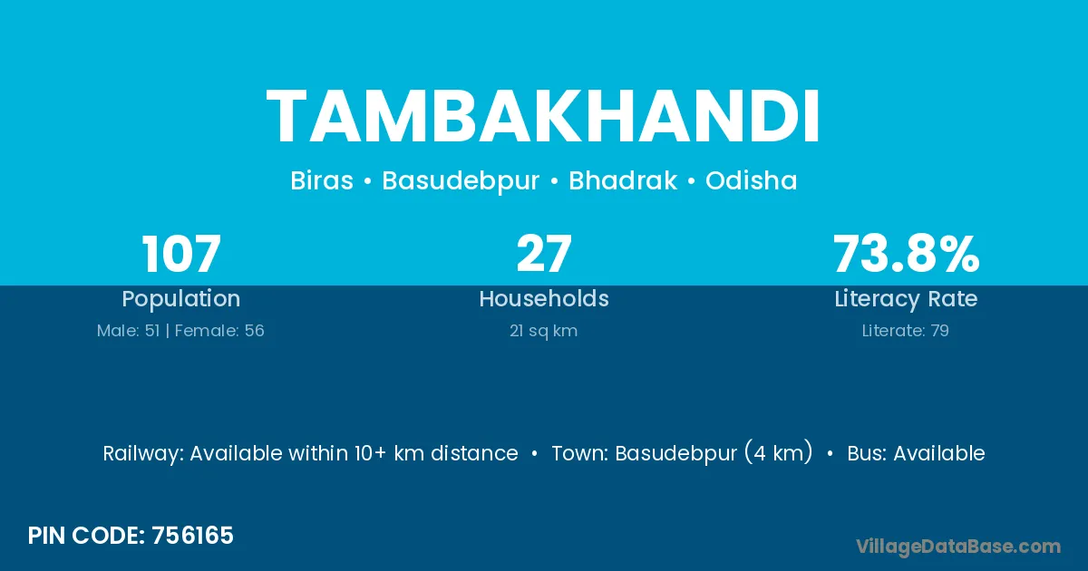 Basudebpur (4 km) is the nearest town to Tambakhandi village for major economic activities and is located approximately 4 km away.