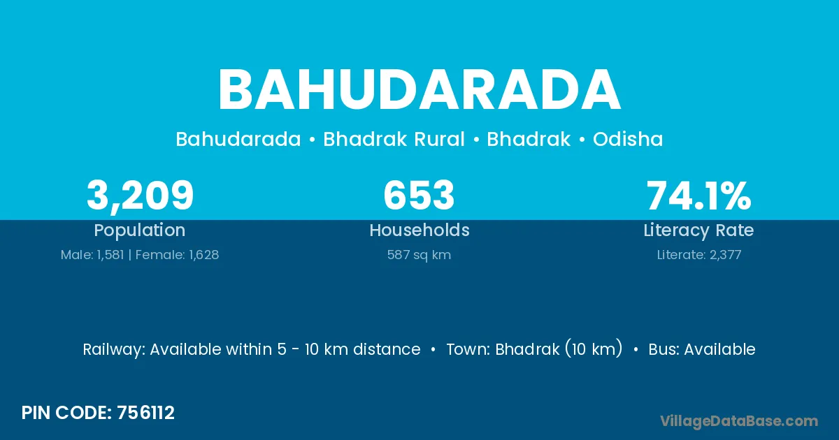 Bhadrak (10 km) is the nearest town to Bahudarada village for major economic activities and is located approximately 10 km away.