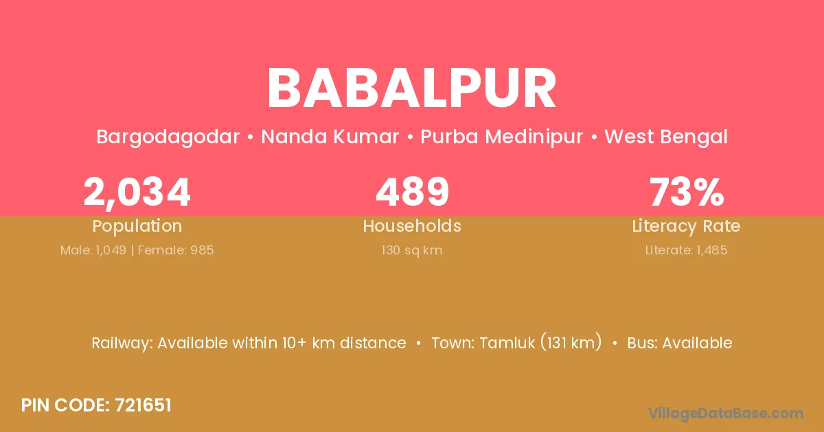 Jajapur (16 km) is the nearest town to Babalpur village for major economic activities and is located approximately 16 km away.