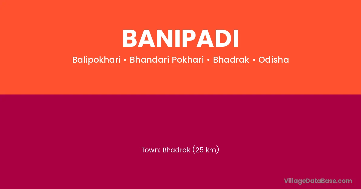 Bhadrak (25 km) is the nearest town to Banipadi village for major economic activities and is located approximately 25 km away.