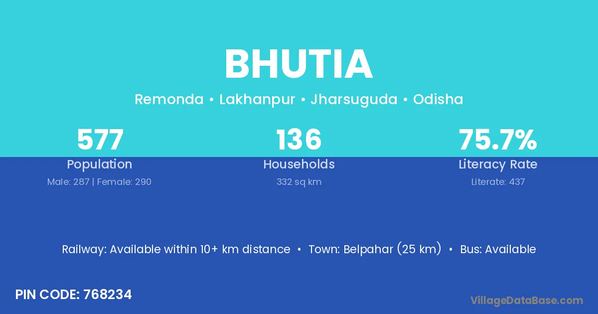According to Census 2011 information, the village code of Bhutia village is 756122.