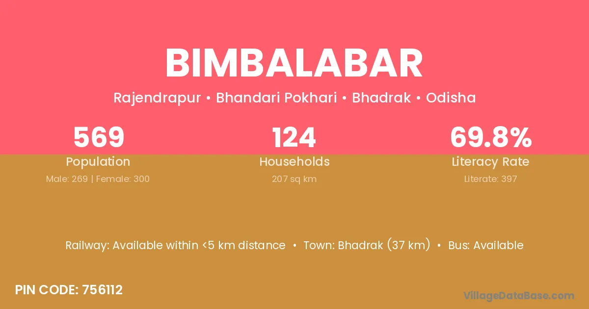 Bhadrak (37 km) is the nearest town to Bimbalabar village for major economic activities and is located approximately 37 km away.