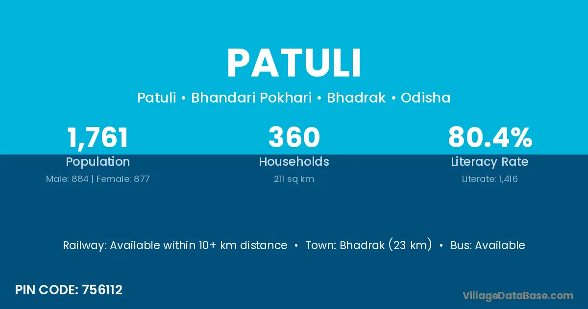 Bhadrak (23 km) is the nearest town to Patuli village for major economic activities and is located approximately 23 km away.