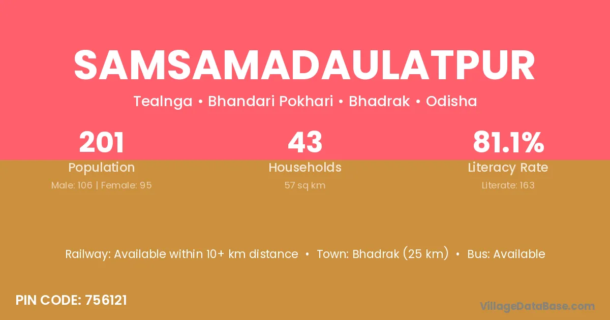 Samsamadaulatpur village has a total population of 201 people, of which 106 are males and 95 are females.