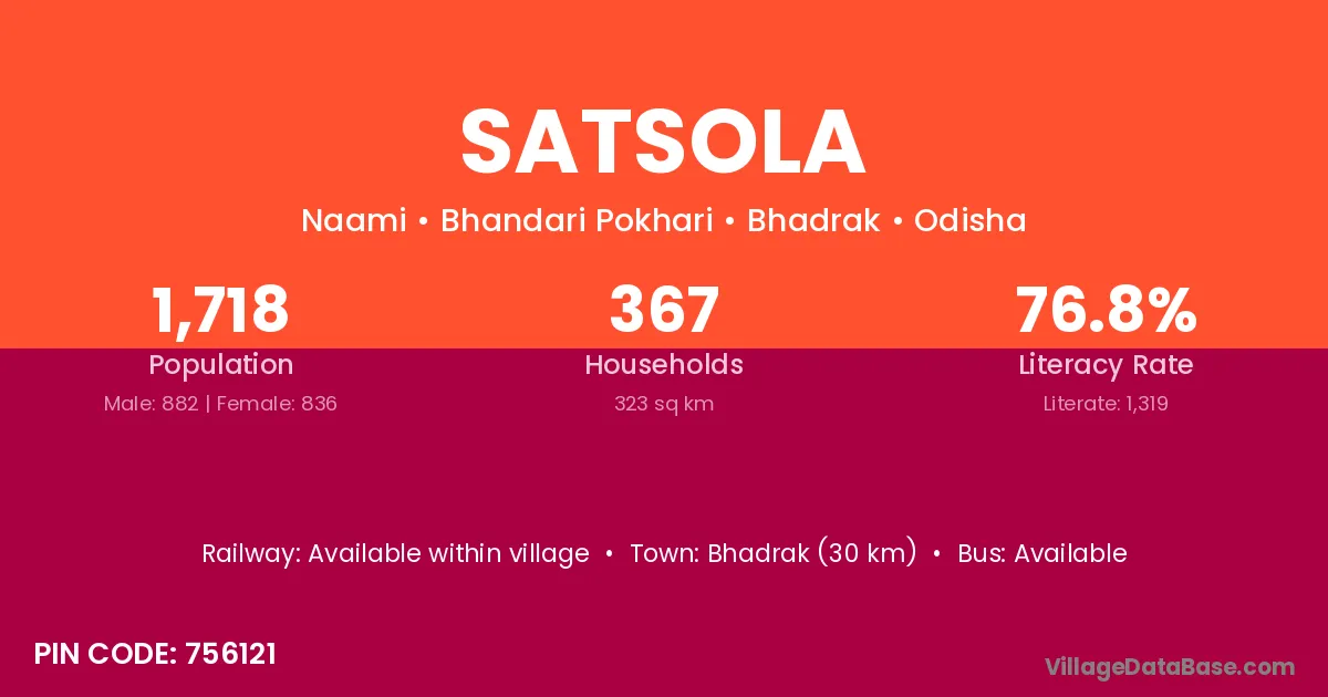 Bhadrak (30 km) is the nearest town to Satsola village for major economic activities and is located approximately 30 km away.