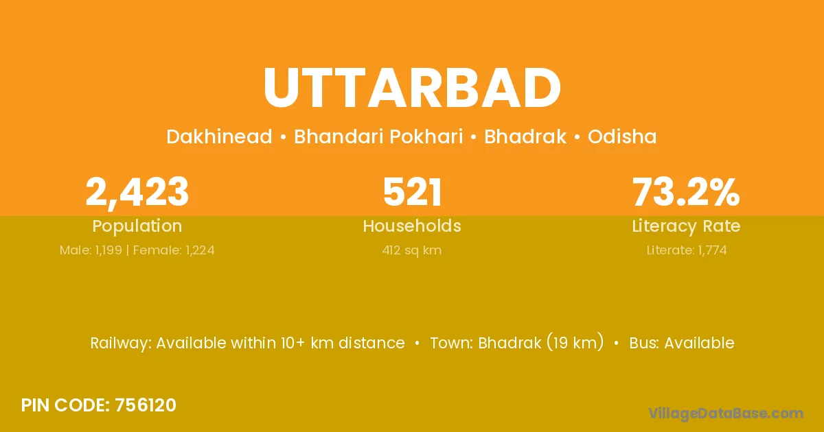 Bhadrak (19 km) is the nearest town to Uttarbad village for major economic activities and is located approximately 19 km away.