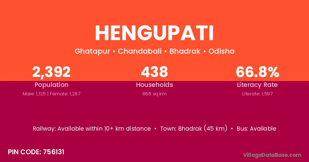 Bhadrak (45 km) is the nearest town to Hengupati village for major economic activities and is located approximately 45 km away.
