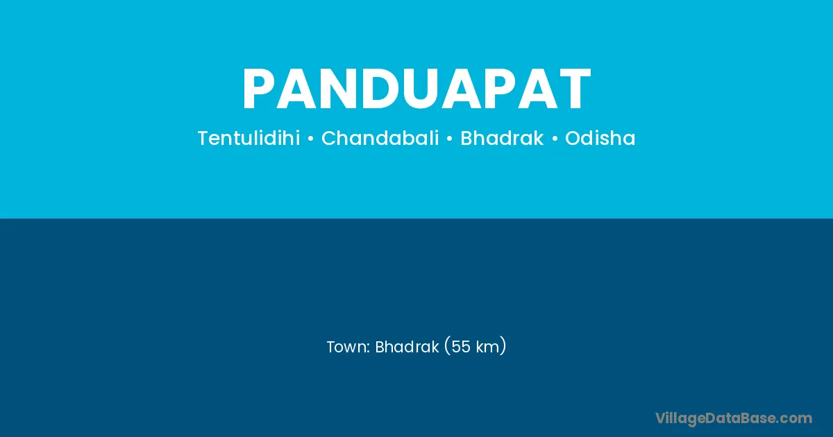 Bhadrak (55 km) is the nearest town to Panduapat village for major economic activities and is located approximately 55 km away.