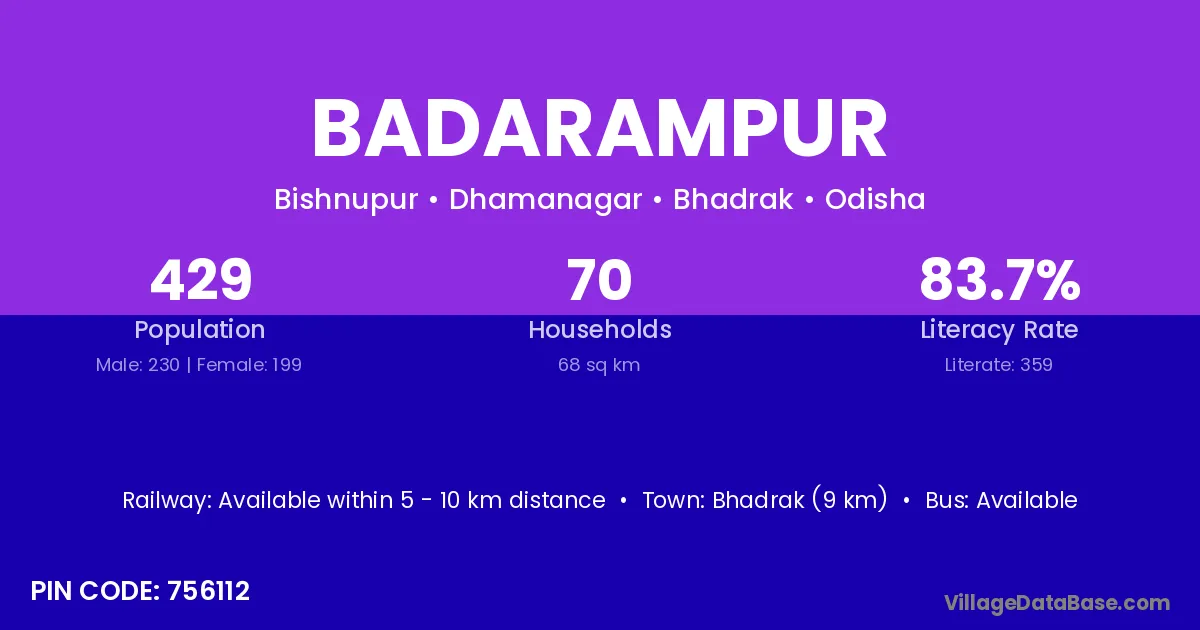 Bhadrak (9 km) is the nearest town to Badarampur village for major economic activities and is located approximately 9 km away.