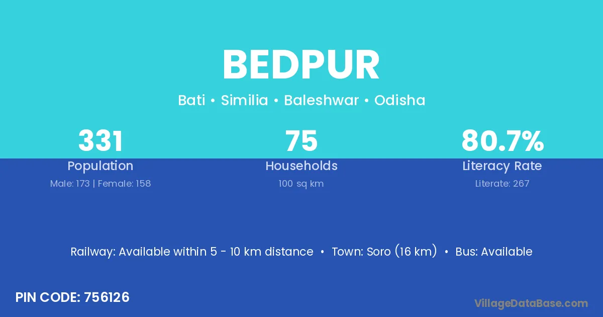 Jajapur (11 km) is the nearest town to Bedpur village for major economic activities and is located approximately 11 km away.