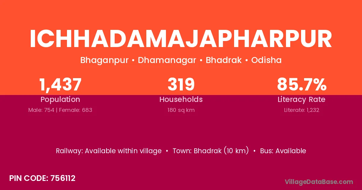 Bhadrak (10 km) is the nearest town to Ichhadamajapharpur village for major economic activities and is located approximately 10 km away.