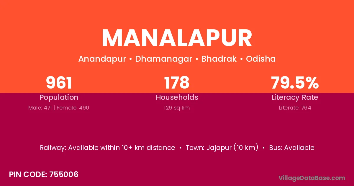 Manalapur village has a total population of 961 people, of which 471 are males and 490 are females.