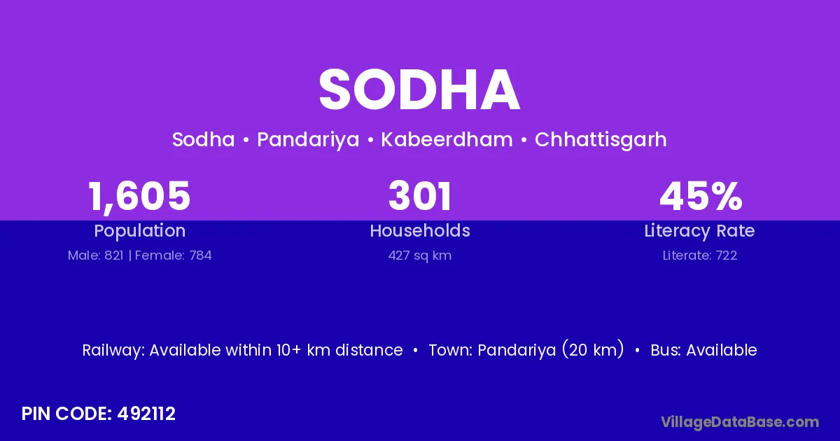 There are approximately 641 households in Sodha village.