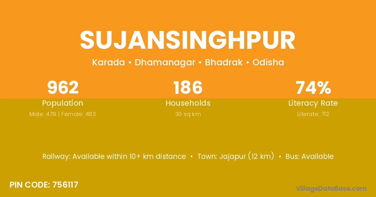 Sujansinghpur village has a total population of 962 people, of which 479 are males and 483 are females.
